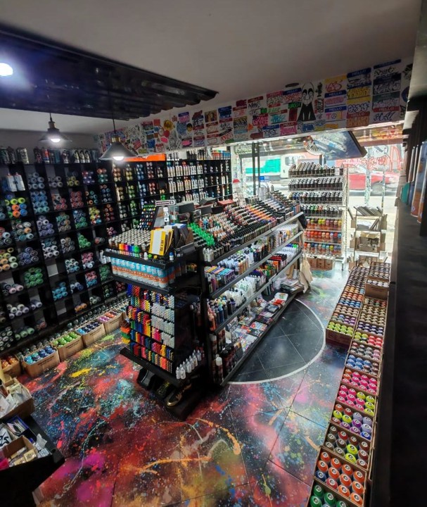 En la búsqueda de tener una espacio con muchas opciones para las diferentes diciplinas de arte grafico, hemos construido una tienda con mas de 3500 artículos entre los que destacan mas de 12 submarcas de aerosoles, Tintas, Marcadores, Caps y accesorios para dar respaldo a muchas creaciones. Cuidando mucho el concepto aplicación y exporacion albergando diferentes areas todas relacionadas con el arte graffico y urbano: Galeria – Talleres – Festivales – Streetwear – Shop dirigida a diferentes diciplinas profesionales dentro del arte grafico